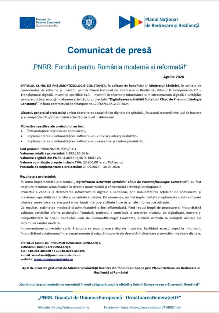 Digitalizarea activității Spitalului Clinic de Pneumoftiziologie Constanța